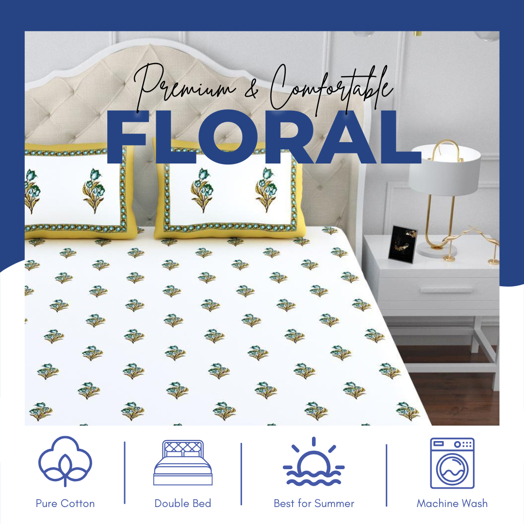 SINDOOR Floral Print Cotton Bedsheet – Double Bed Size